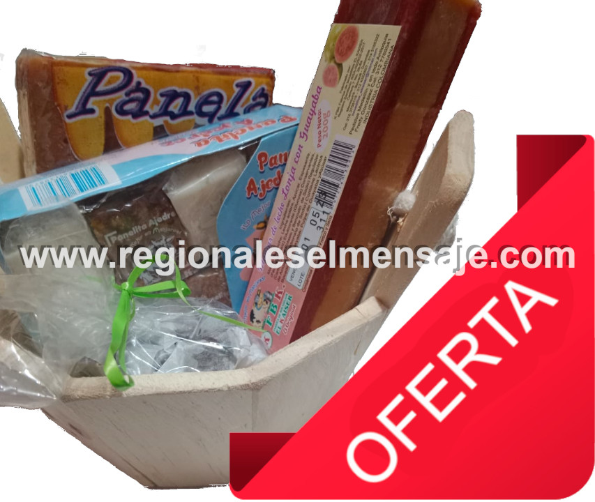 Ancheta de madera tipo canasto pequeña que incluye una selección de productos artesanales, ideal para regalar en ocasiones especiales o como un detalle lleno de tradición y sabor. La ancheta contiene:
