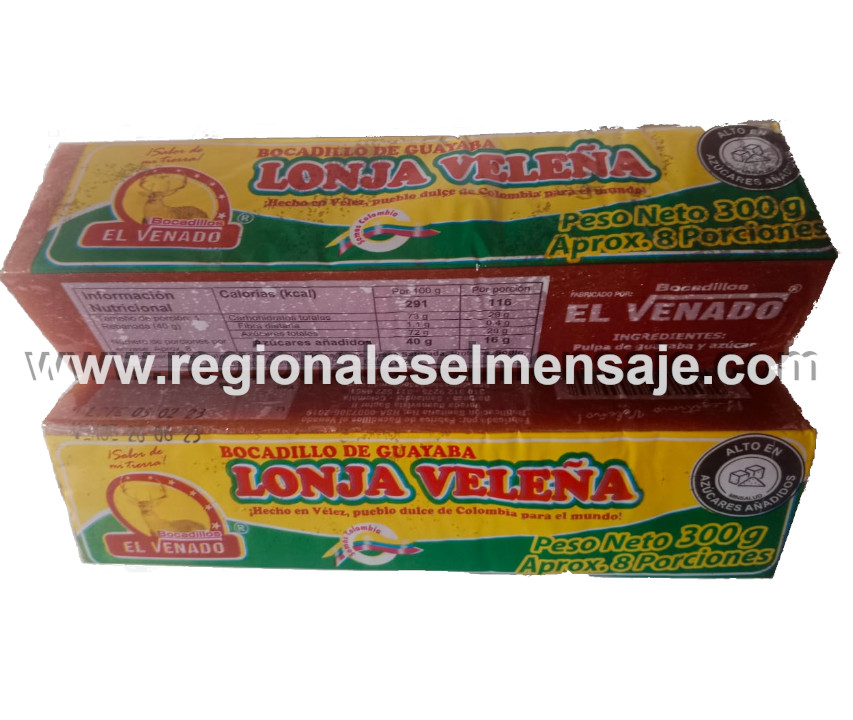 Producto: Lonja de Guayaba x 300 gr. Categoría:Dulces y Postres Artesanales Descripción Detallada:Dulce de guayaba artesanal con azúcar, elaborado cuidadosamente para mantener el sabor auténtico de la fruta y la dulzura tradicional. Ideal para quienes buscan una golosina natural y llena de sabor. Características del Producto:- Elaborado con guayaba roja y azúcar.- Sin conservantes ni colorantes artificiales.- Presentación individual envuelta en plástico transparente. Beneficios:- Sabor auténtico que destaca la dulzura de la guayaba.- Ideal para disfrutar como golosina o como acompañamiento de postres.- Práctico y fácil de llevar gracias a su empaque individual. Modo de Consumo:Disfruta este bocadillo como golosina, como postre después de las comidas, o como acompañante de frutas frescas, quesos o galletas. Perfecto para compartir en reuniones o como un dulce capricho en cualquier momento del día. Sugerencia de Venta:Esta lonja de guayaba es ideal para exhibir en la sección de productos artesanales, destacando su sabor auténtico. Es una excelente opción para tiendas que buscan ofrecer productos naturales y únicos para sus clientes. Fecha de Vencimiento:12 meses desde la fecha de fabricación. Ingredientes:Guayaba roja, azúcar. Lugar de Producción:Este dulce se elabora en Vélez, Santander, reconocida por su tradición en la producción artesanal de dulces. Esto garantiza un control de calidad riguroso y contribuye al desarrollo económico de la comunidad local.